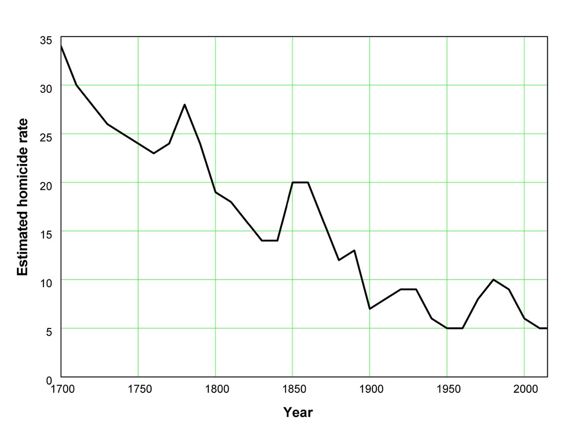 I did not have these data (from Claude Fischer via Maria Tcherni-Buzzeo) when I wrote The Better Angels of Our Nature (or the follow-up in Enlightenment Now), but they show that the US enjoyed a sixfold decline in homicide rates over three centuries, parallel to data from t.co/MMIs85ly5I